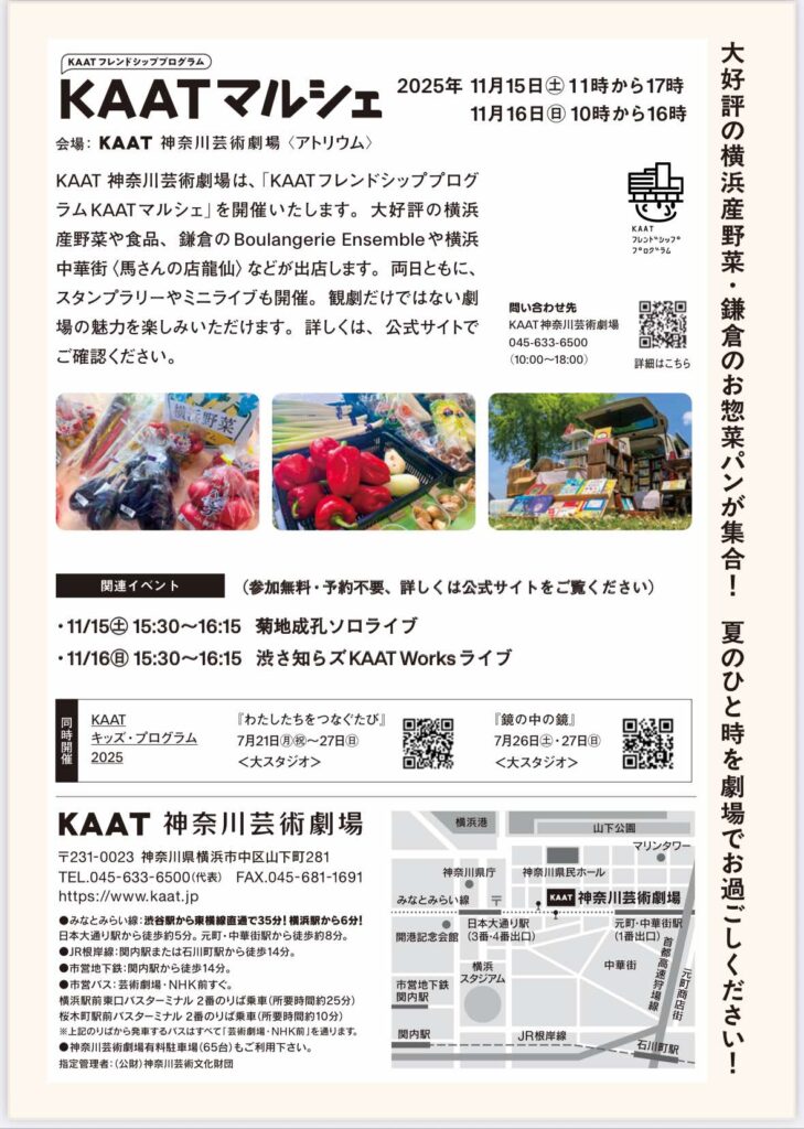 Woo-By.Styleは、2025年11月に開催される「KAATマルシェ」(会場:神奈川芸術劇場〈KAAT〉)において、運営協力を行うこととなりましたのでお知らせいたします。