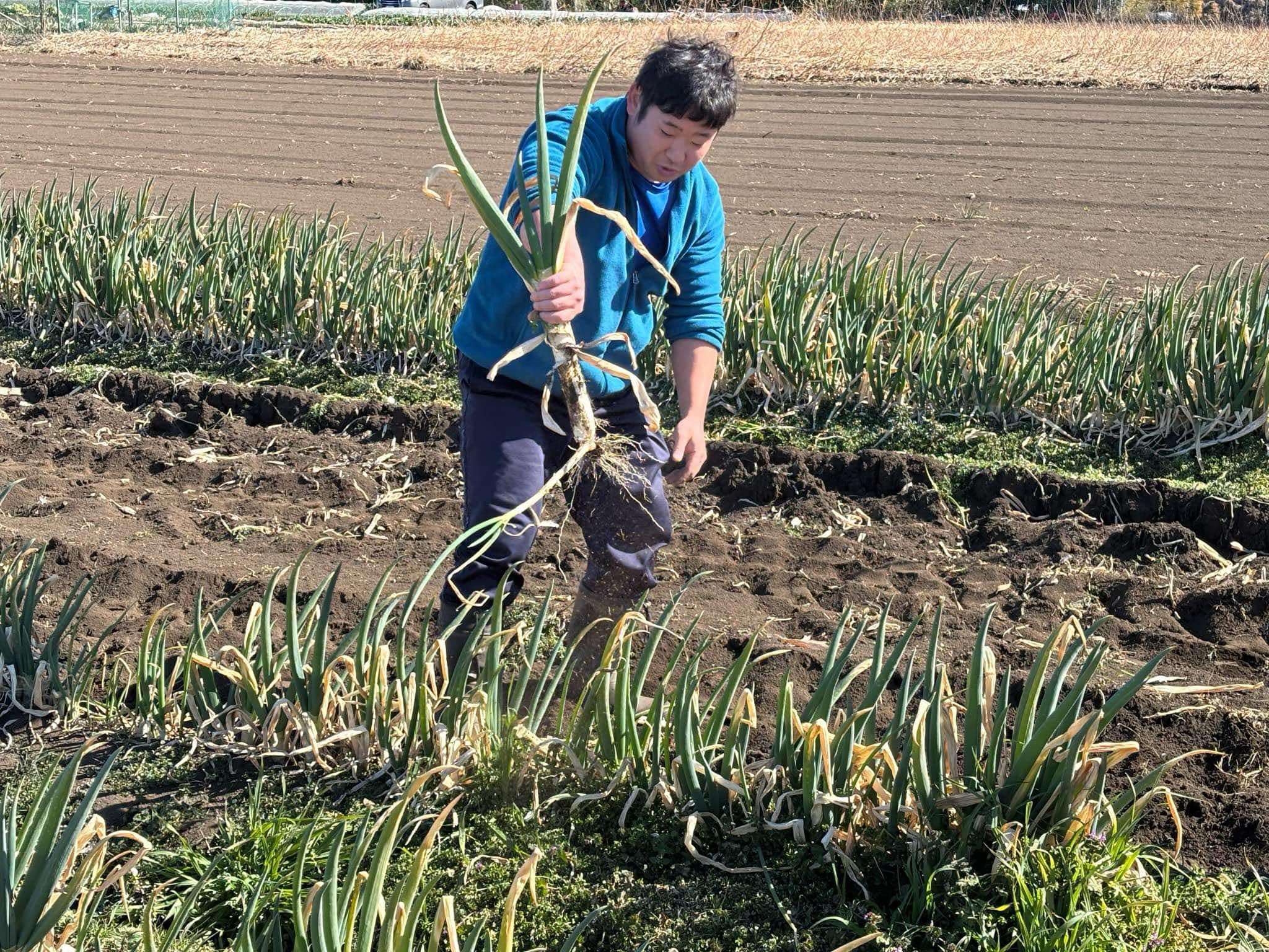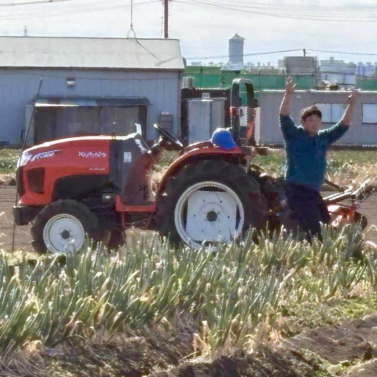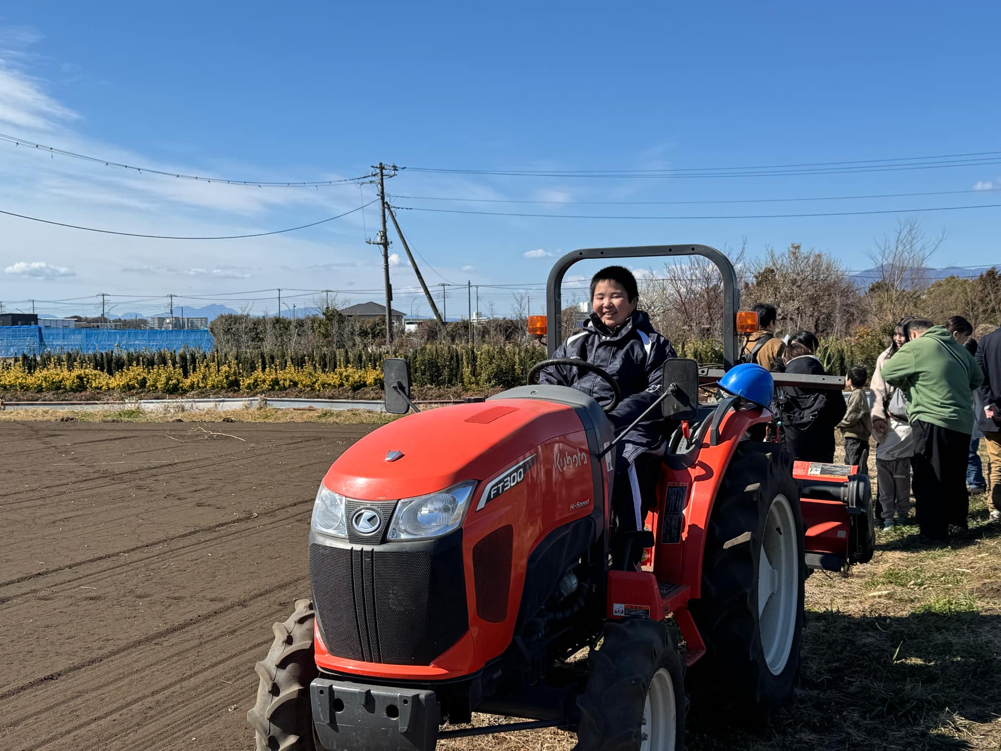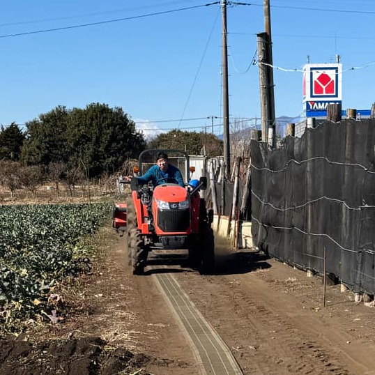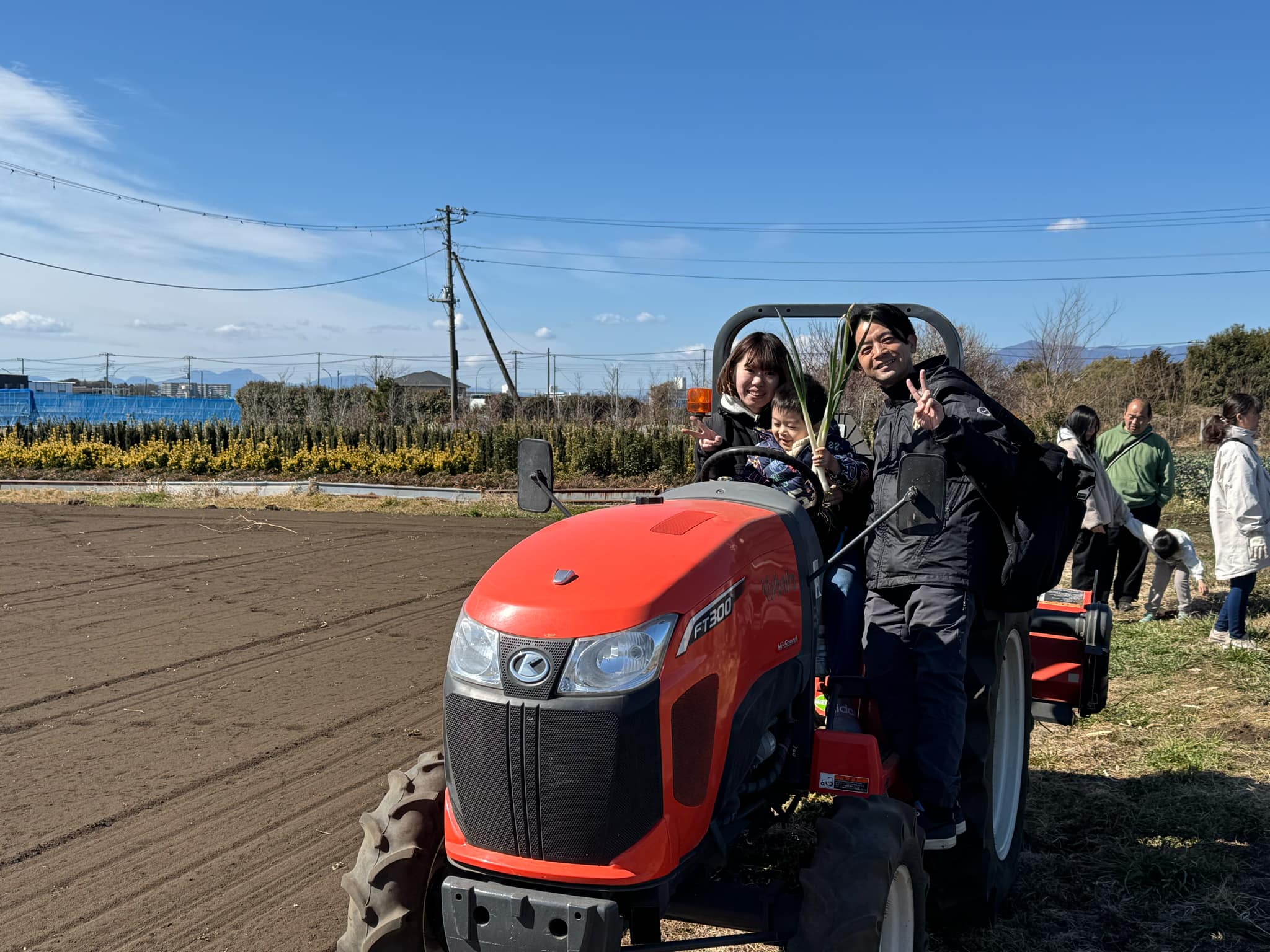 野菜収穫にご協力いただいたのは、横山農園の横山勝太さん。颯爽とトラクターで登場です!